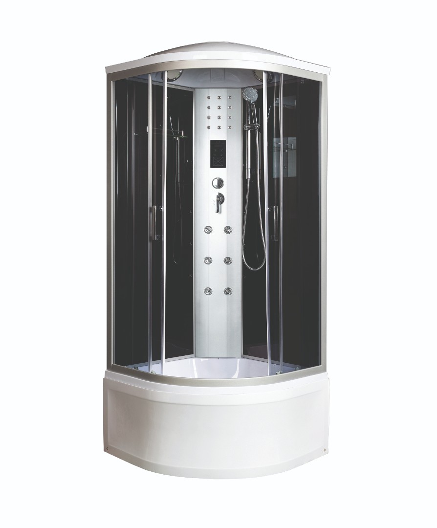 Комплектация: крыша, верхний душ, верхний свет, динамик, вентилятор, центральная стойка, пульт управления, радио, телефон, смеситель с переключением режимов, гидромассажные форсунки (6 шт), штанга, ручной душ 3-х режимный, зеркало, полочка, поддон, сиденье в поддоне, сифон.