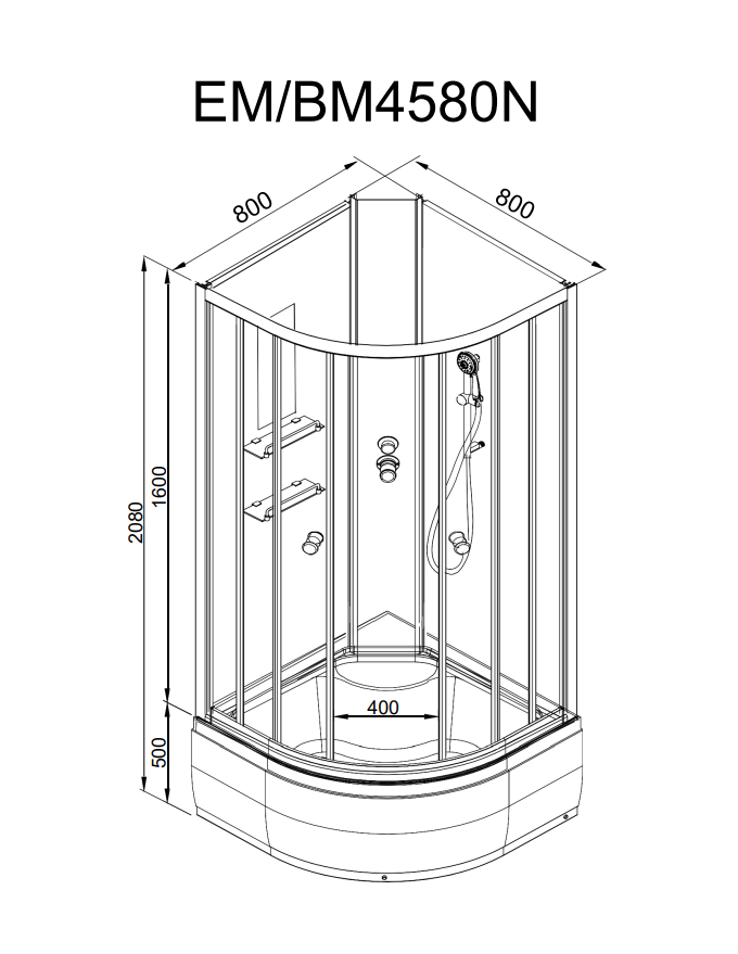 Душевая кабина с гидромассажем и LED-подсветкой DTO EM4580NLED+GM 80x80