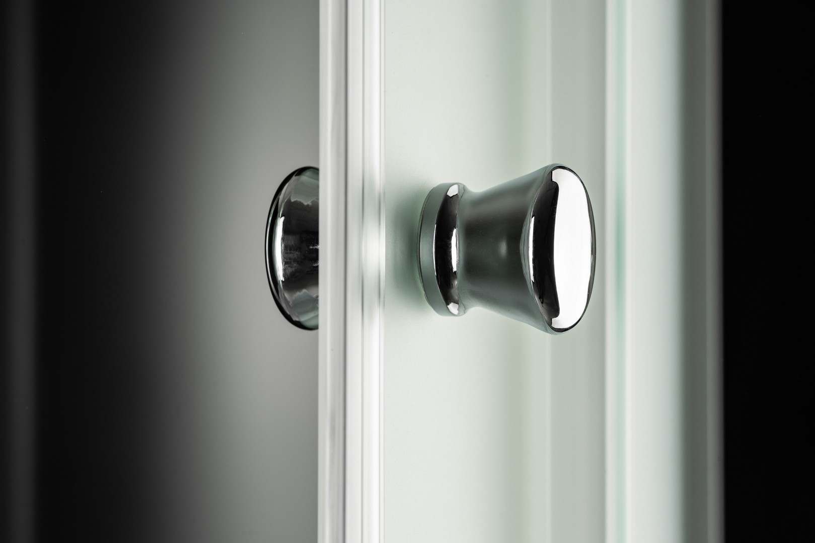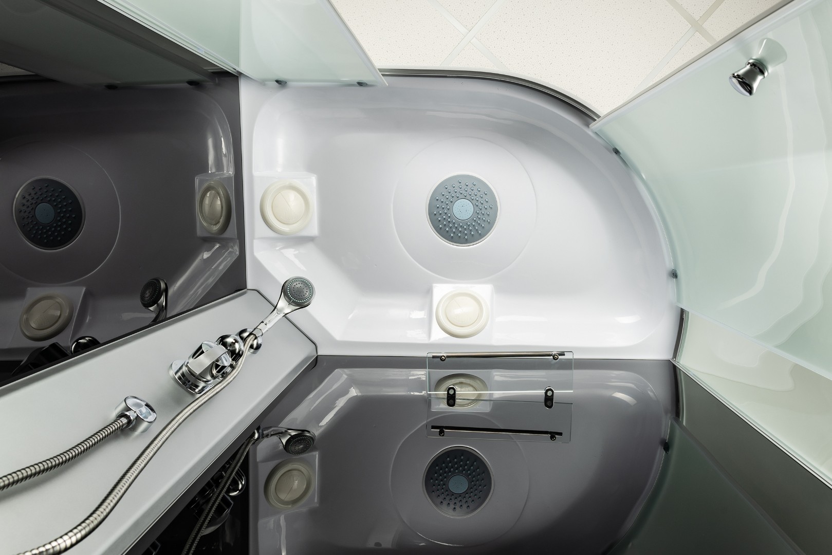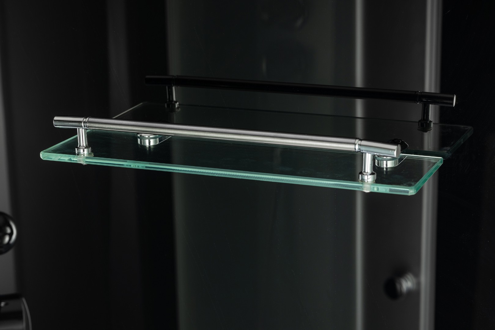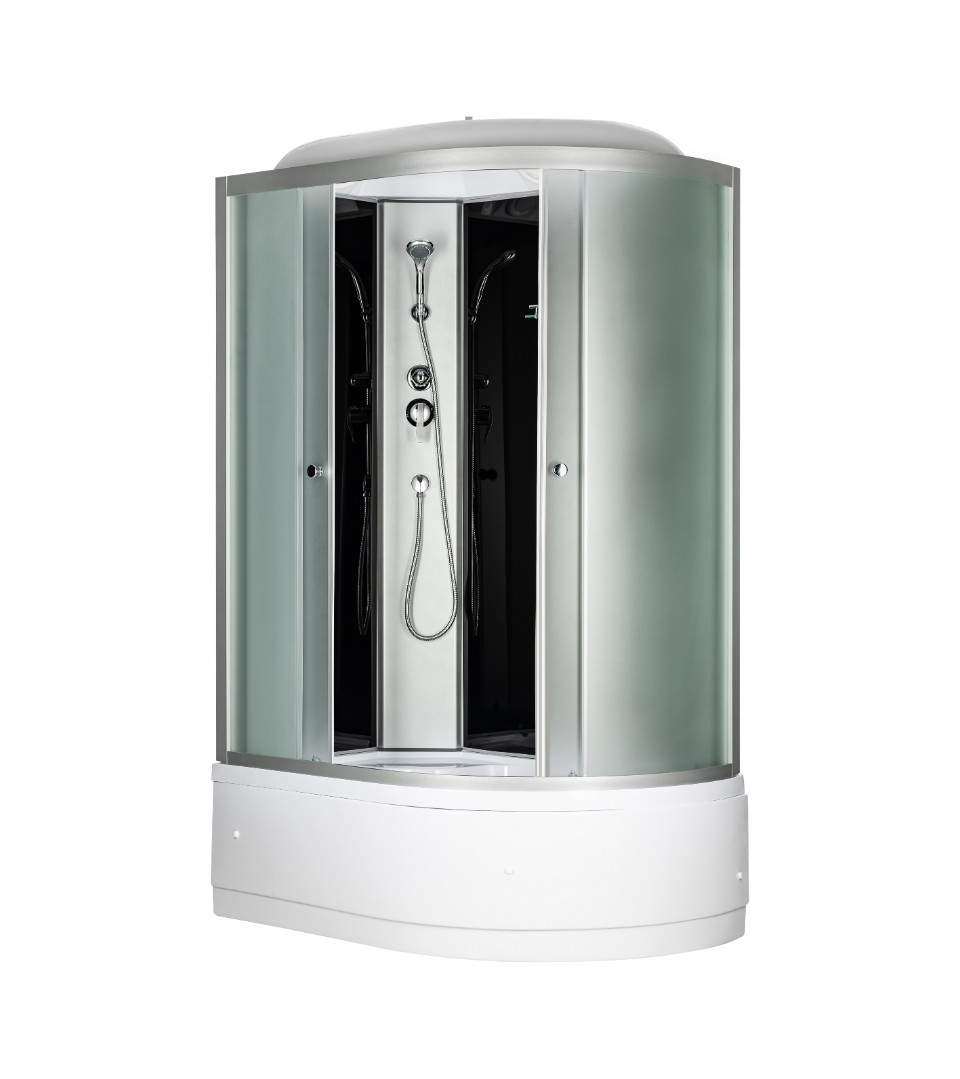 Душевая кабина Saniteco BST-12080B закрытого типа с матовыми передними стёклами и чёрными задними стенками.