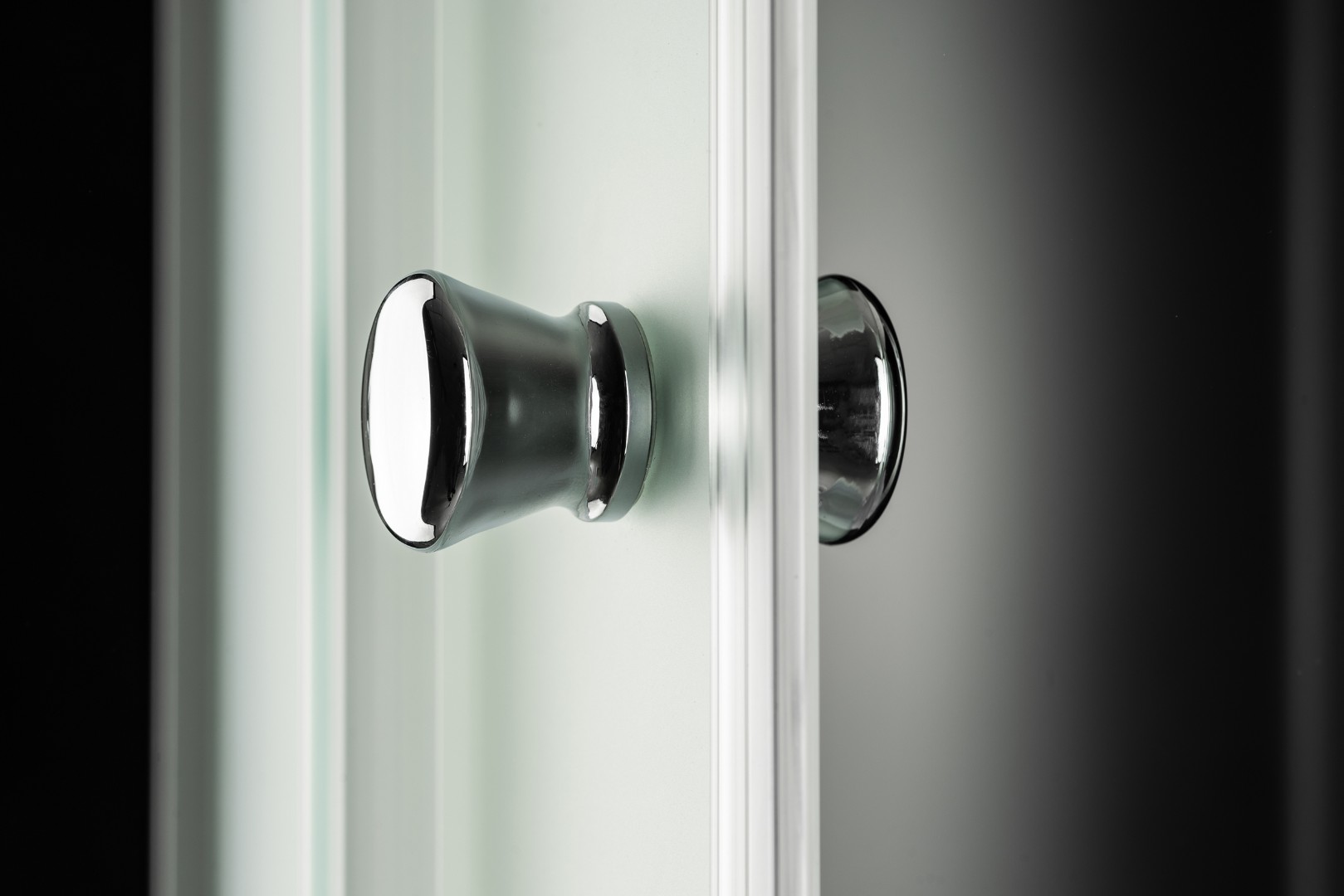 Душевая кабина Saniteco BST-190B закрытого типа с матовыми передними стёклами и чёрными задними стенками.