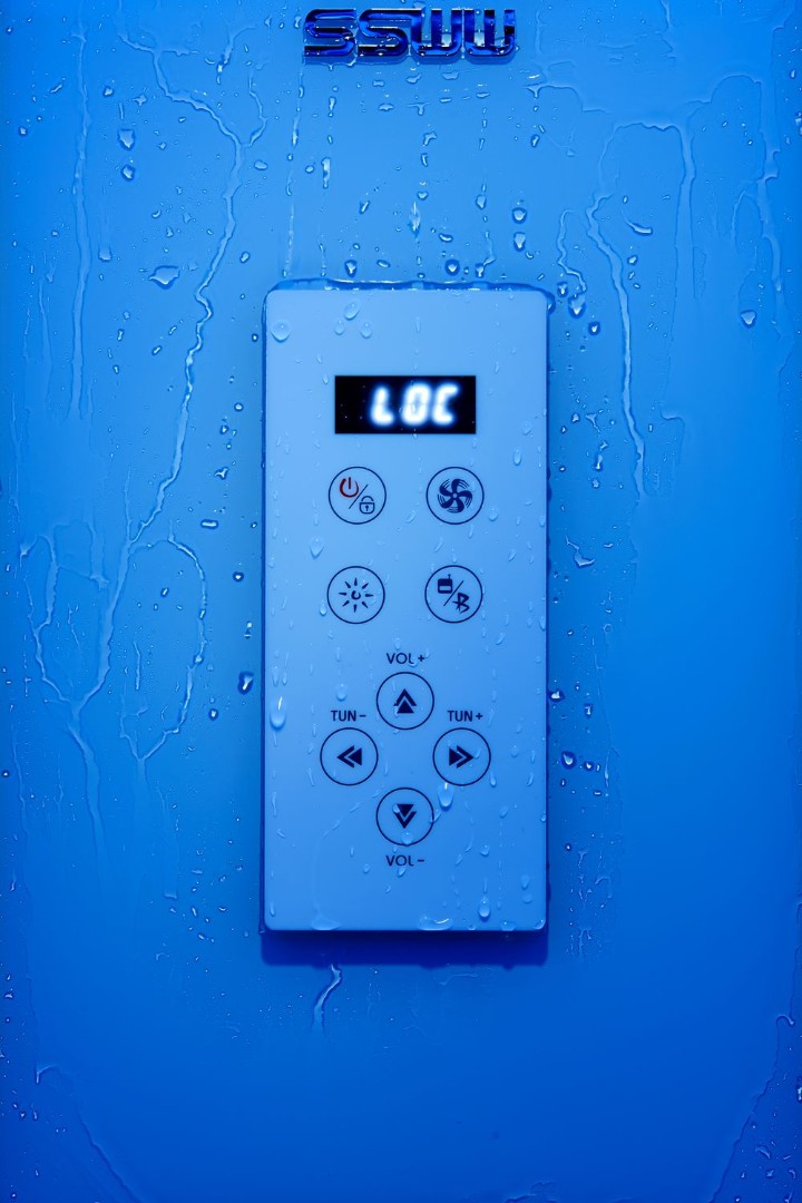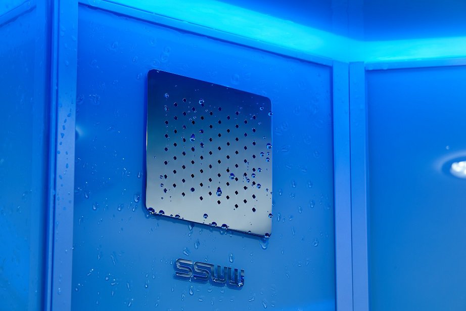- Верхний душ, дверные ручки, накладки на динамик и вентилятор из нержавеющей стали.