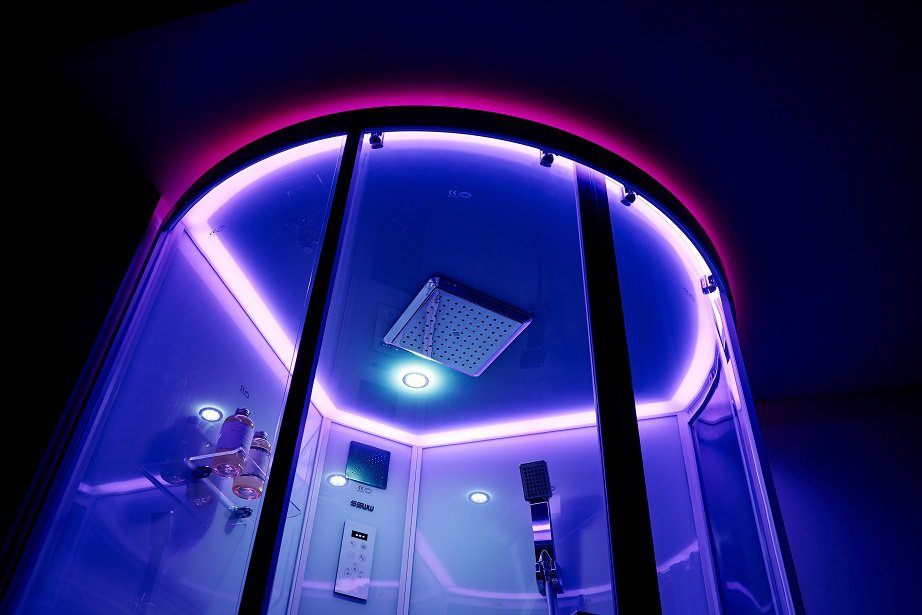- Стеклянная крыша с многоцветной LED подсветкой + LED лампа.
