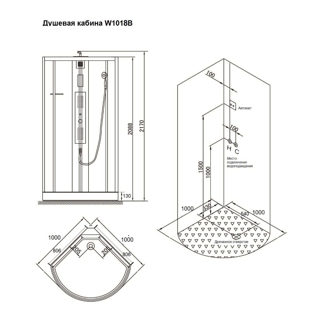 Душевая кабина с гидромассажем SSWW W1018B 100x100