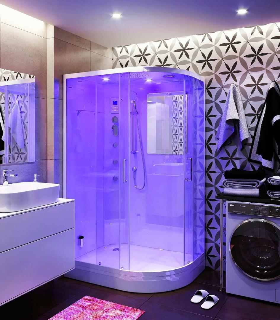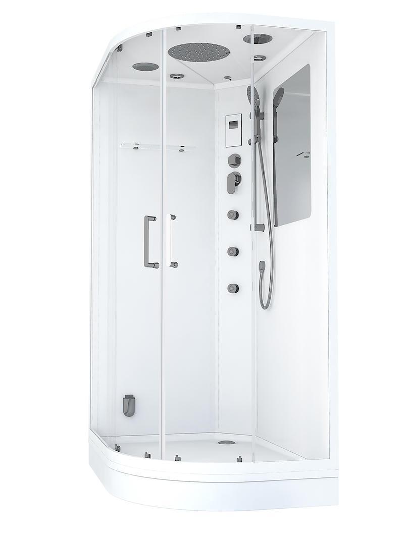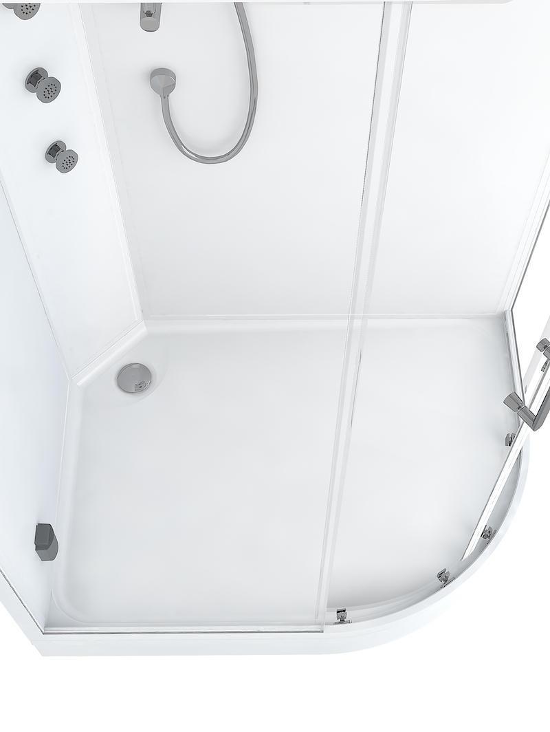 В душевой кабине установлен парогенератор, который способен в течении 10-15 минут прогреть воздух до 45-55 градусов и поднять влажность до 95% (турецкая баня).