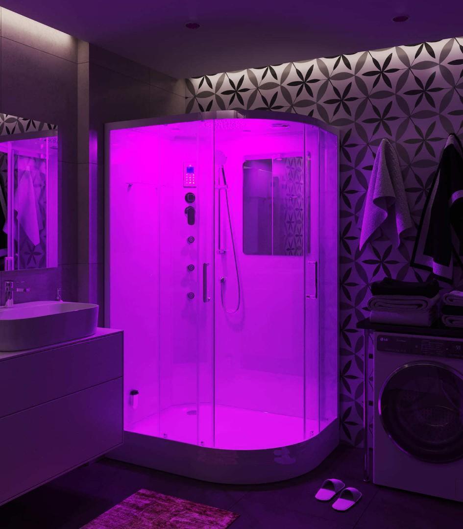 - Верхний свет - 2 мощных LED фонаря с дневным освещением дополнены многоцветной подсветкой (7 цветов) для принятия процедур хромотерапии.