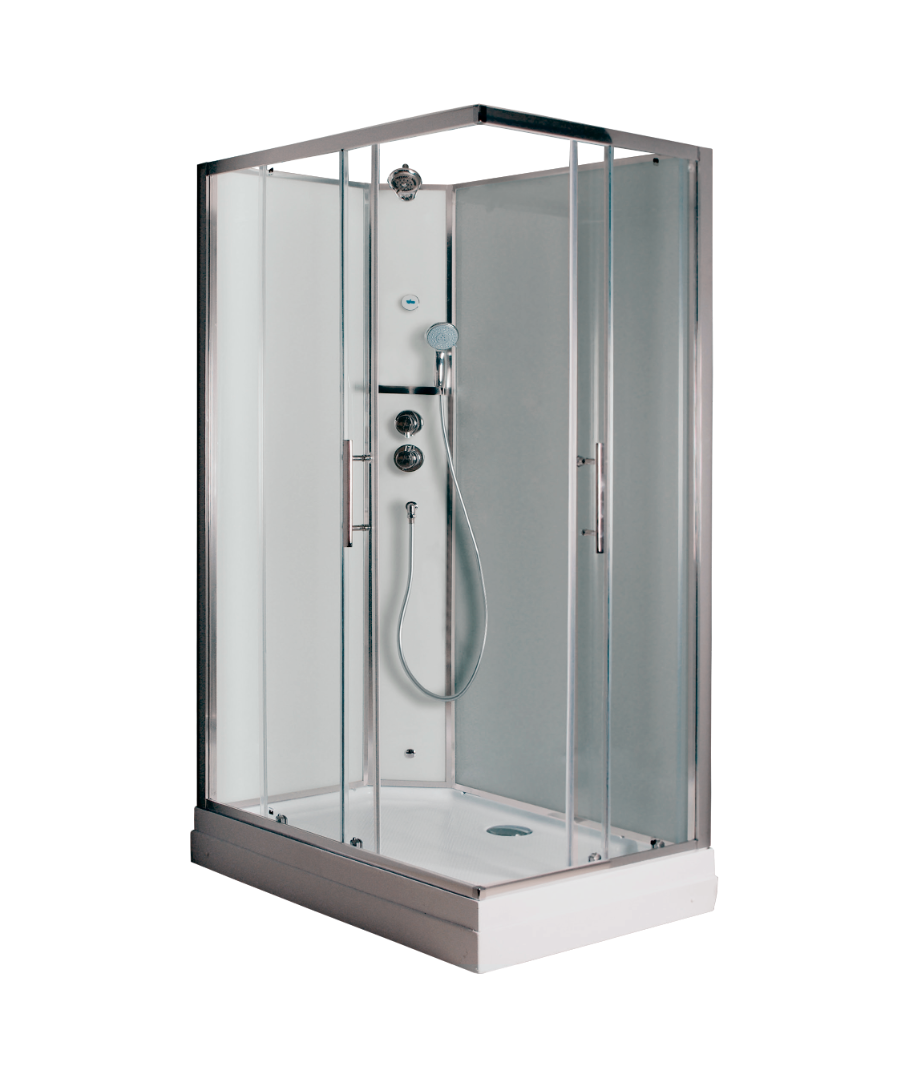 Душевая кабина Timo ILMA-102 120х80х225 см оснащается раздвижными дверями, выпускается в левом и правом варианте. Форма модели – прямоугольная, хромированный профиль хорошо сочетается с прозрачным стеклянным ограждением, задние стенки белые. Низкий поддон обеспечивает удобный вход внутрь кабины. Устанавливается с усиленным металлическим каркасом. На поверхности поддона есть антискользящее покрытие. В комплектацию кабины входит термостатический смеситель. Дополнительная опция – крыша и создающий эффект хамама парогенератор.