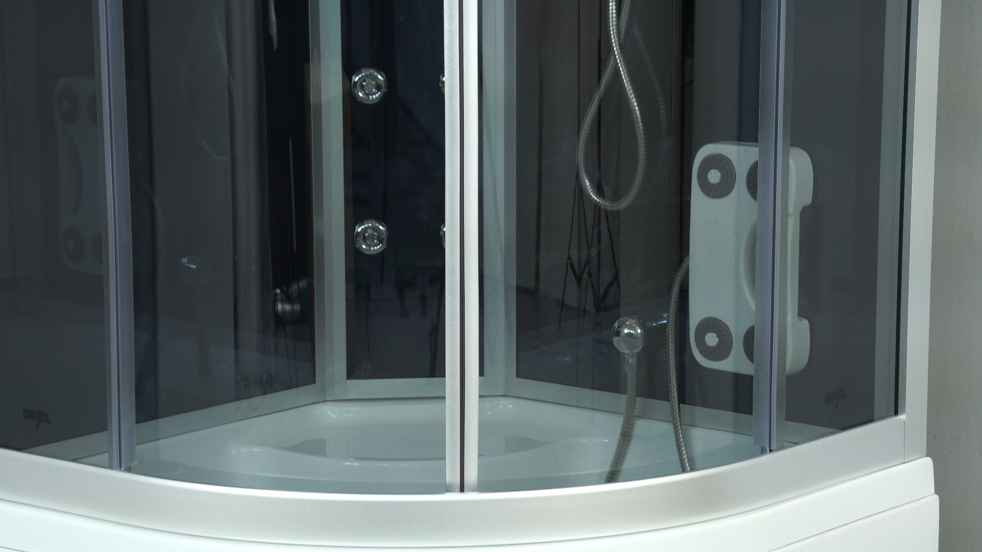 Модель TimoT-1100 предназначена для угловой установки, её поддон выполнен в форме сектора круга с радиусом 1 м. Глубина поддона (45 см) позволяет использовать его как мини-ванну – например, для купания детей или принятия тёплых ножных ванн. Кроме того, из кабин с глубоким поддоном меньше разбрызгивается вода при выходе. В угол поддона встроено сиденье для комфортного мытья и принятия гидромассажных процедур. Раздвижные двери Тimo Т-1100 выполнены из специального закалённого атравматичного стекла, которое невозможно разбить случайным ударом или толчком. Тонированные передние стёкла и задние стенки с зеркальной тонировкой создают современный и стильный облик этой кабины.