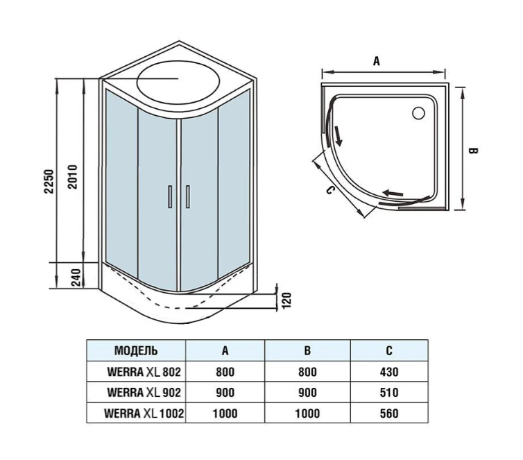 Душевая кабина Welt-Wasser WERRA XL 902 90х90
