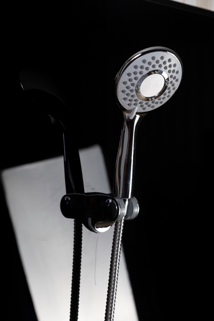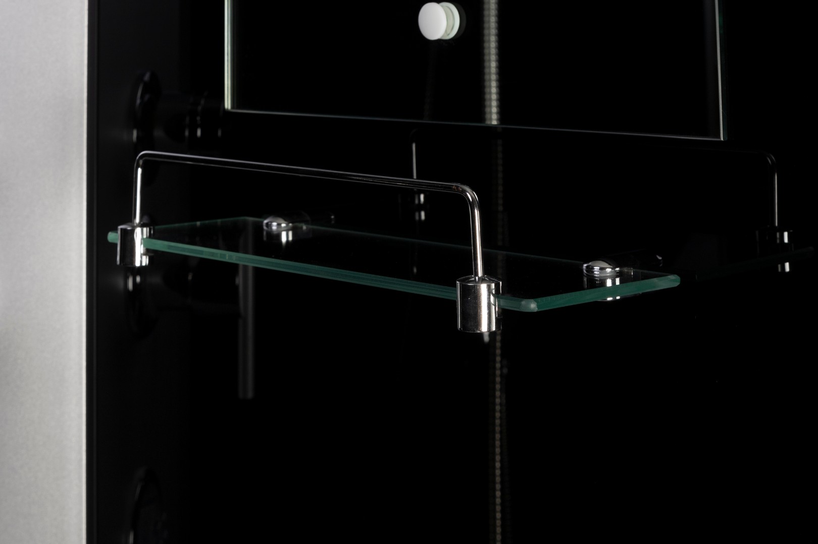- Простейшая комплектация: тропический душ, классическая ручная лейка, полочка и зеркало.