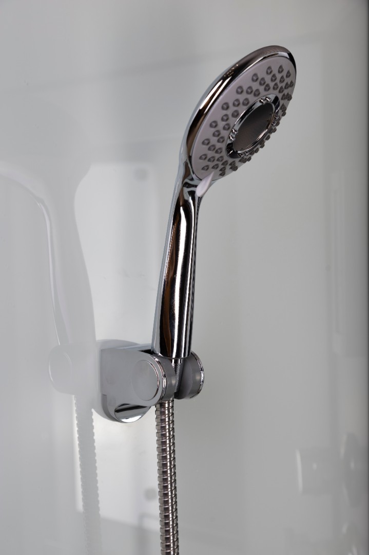 - Из аксессуаров в кабине есть полка для средств гигиены, можно использовать дополнительные аксессуары на присосках.