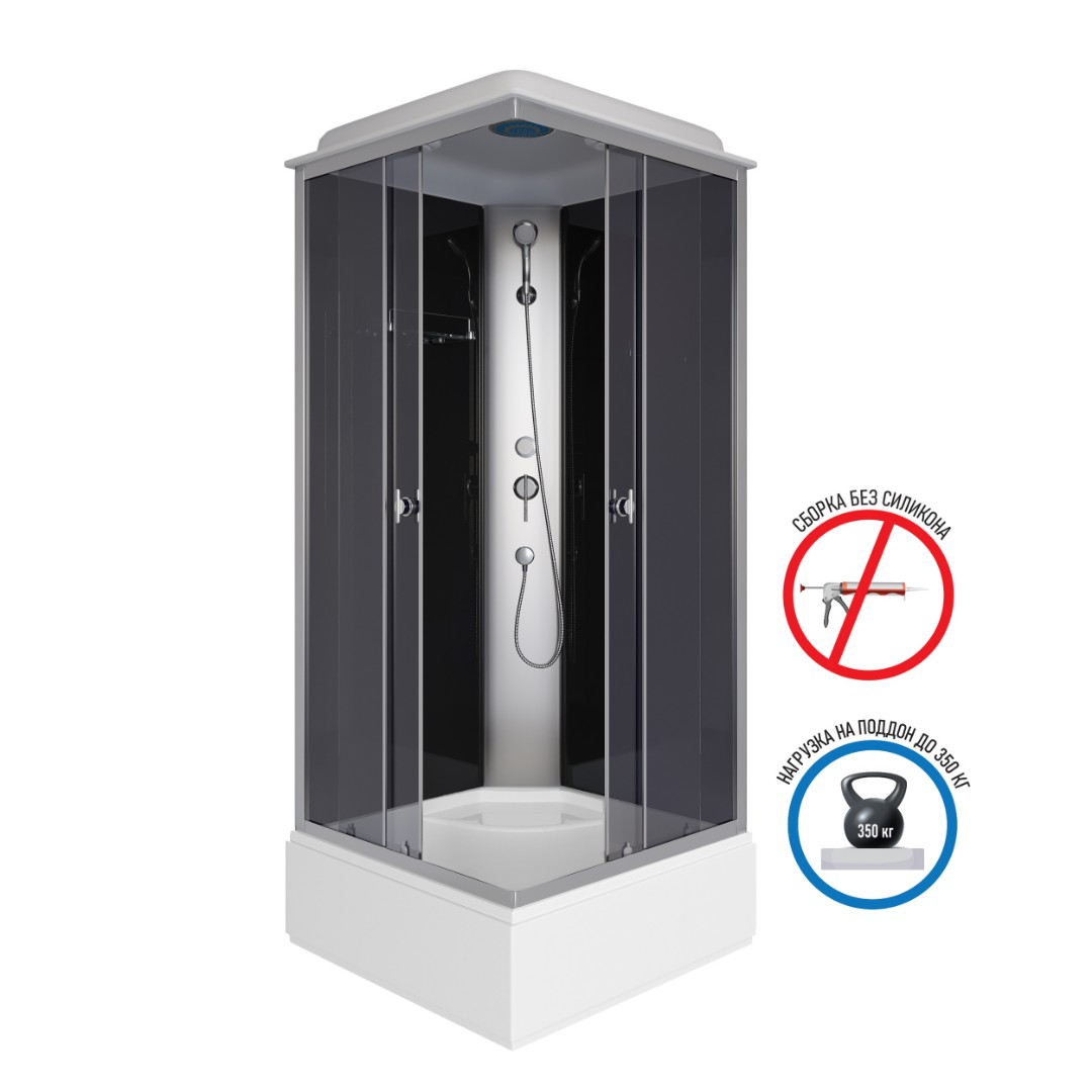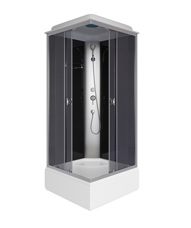 Душевая кабина Niagara Eco E90/26Q/TN - угловая, квадратная, тонированная, размер кабины 90х90х215. Имеет средний поддон 30 см с антискользящим покрытием. Кабинка укомплектована тропическим душем и дополнительной лейкой. Это самая простая и недорогая душевая кабина, установить её можно на даче, в бане, сауне и загородном доме. Кабина крепкая, изготовлена из акрила и калёного стекла 4 мм.
