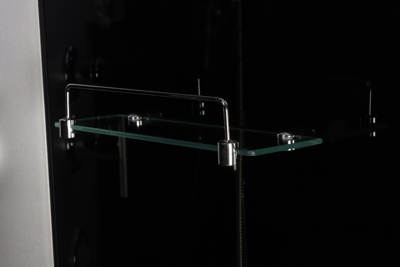 Задние стенки окрашены в чёрный цвет, а лицевые тонированные. Материал - калёное стекло 4 мм.