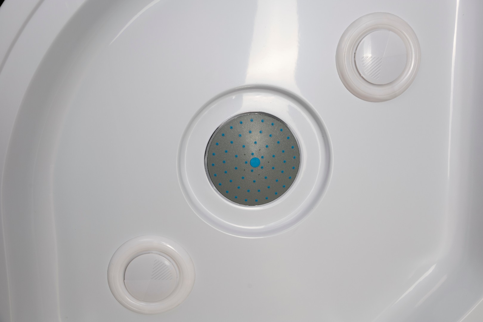 Поддон с антискользящим покрытием, чаша закреплена на железном каркасе: поддон не скрипит, не прогибается под ногами, очень крепкая конструкция. Комплектуется сифоном и гофрированной трубой.