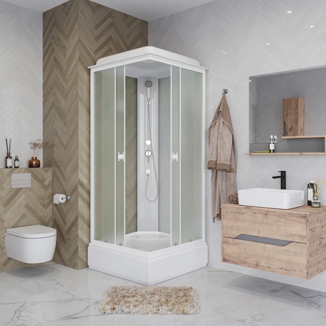 Кабинка относится к недорогому сегменту, так как состоит из самой простой комплектации; тропический душ и дополнительная лейка. Идеально подходит для дачи, загородных жилых и не жилых помещений. Установите эту кабину у себя в бане, в летнем домике или в квартире, в которой есть место под хорошую, крепкую, долговечную кабинку.