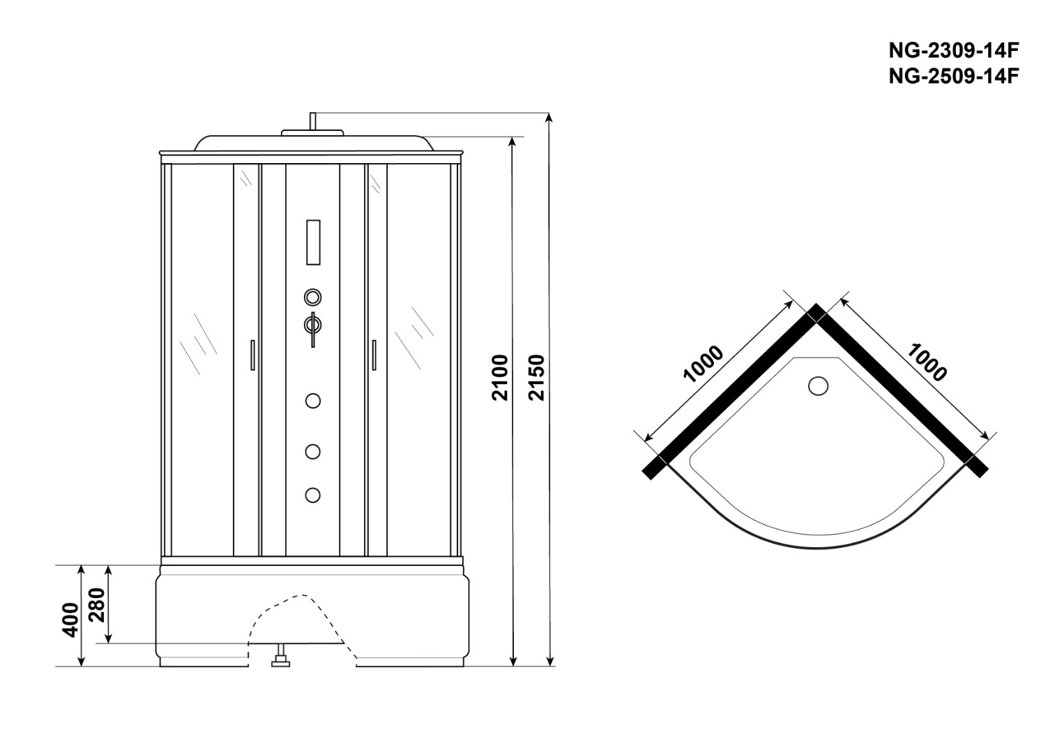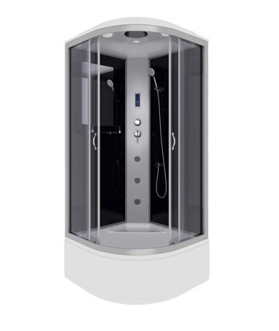 Полноценная гидромассажная кабина с основными функциями, подойдёт для любой ванной комнаты. Размер душевой кабины 90x90x215 см.