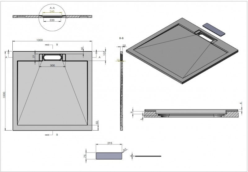 - Возможна подгонка (подрезка) поддонов под индивидуальные особенности размеров душевой зоны.