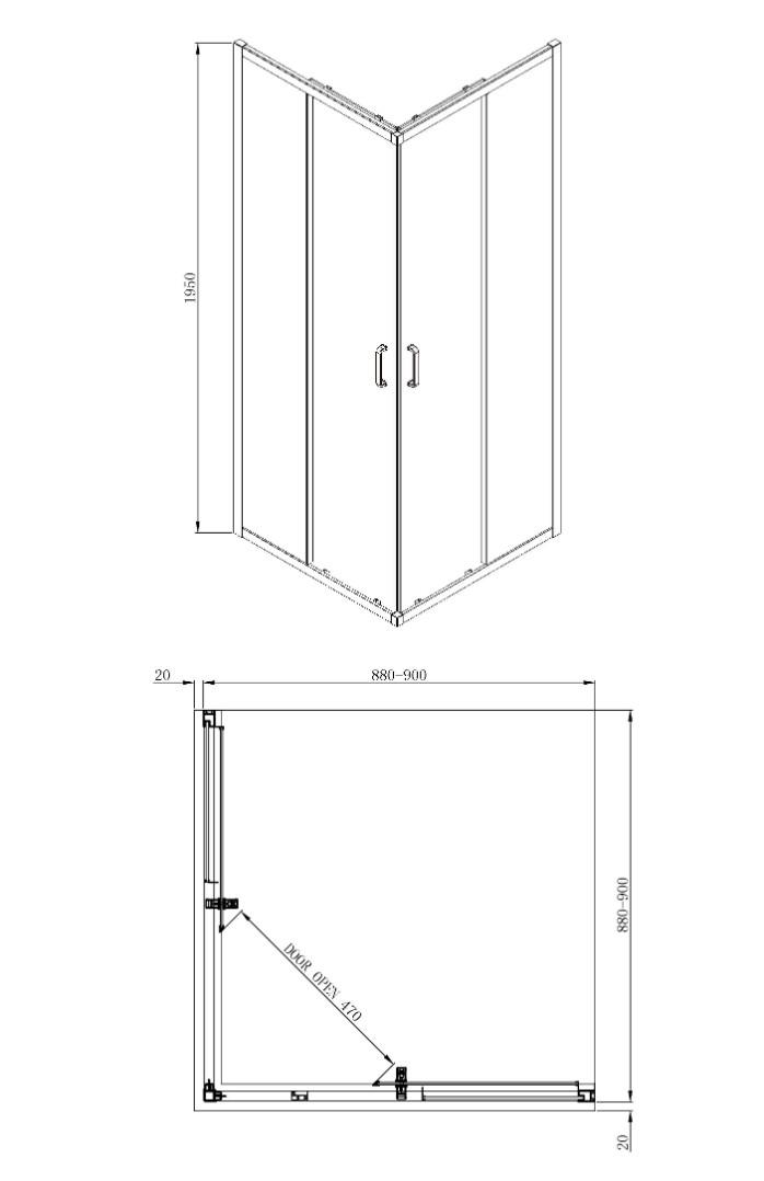 Душевое ограждение Гласс лайн Виеркант-90 / Glass line Viercant-90 прозрачное.