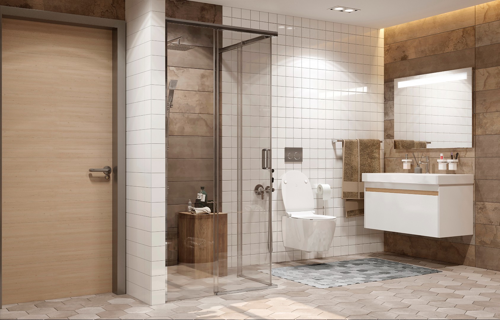 Низкий порог ограждения создаёт ощущение открытого пространства при приёме душа и одновременно чётко разграничивает душевую зону от остальной части ванной комнаты. Ограждение может быть установлено на поддон (подиум) или непосредственно на пол, с линией стекла или краем профиля вдоль границы керамической плитки со встроенным душевым каналом или трапом. Уплотнители обеспечивают 100% герметичность изделия, благодаря плотному соединению стекольного полотна со всеми элементами душевого ограждения.