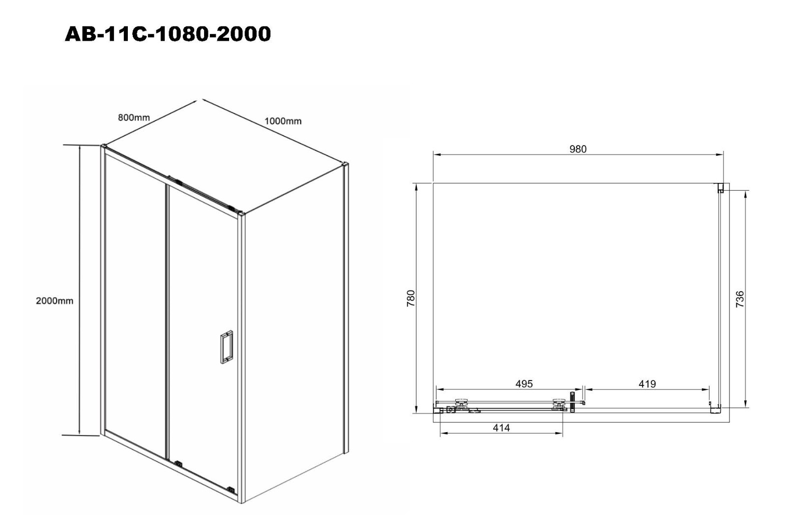 Душевой уголок AQUABATH ATLAS AB-11C-1080-2000 100x80