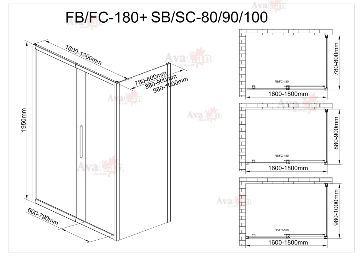 Душевой уголок AvaCan FC-160-SC100 160-180x100