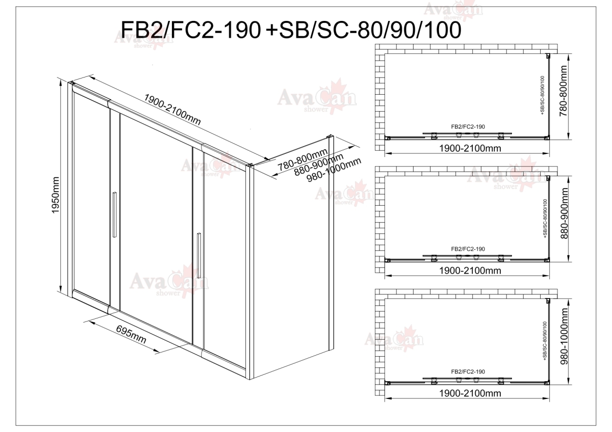 Душевой уголок AvaCan FC2-190-SC100 190-210x100