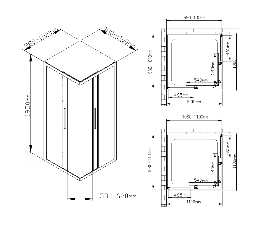 Душевой уголок AvaCan KC100 Chrome размер (100110)x(100-110)x195 см.