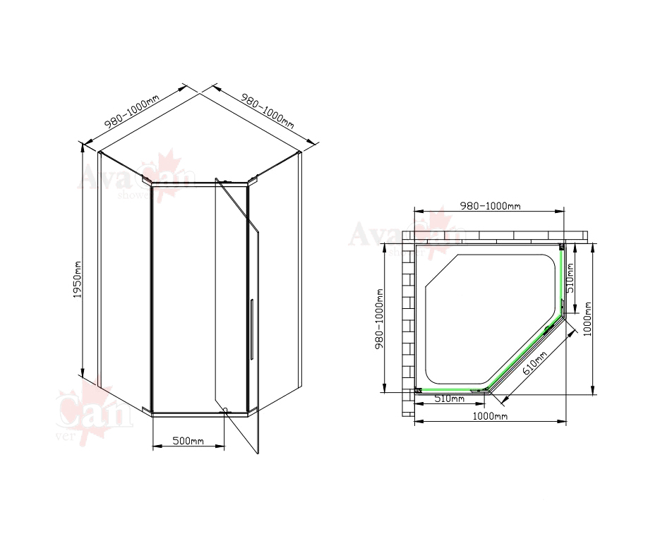 Душевой уголок AvaCan PC100MT AVA 100x100