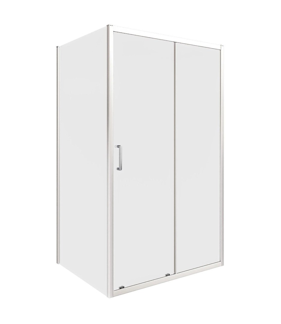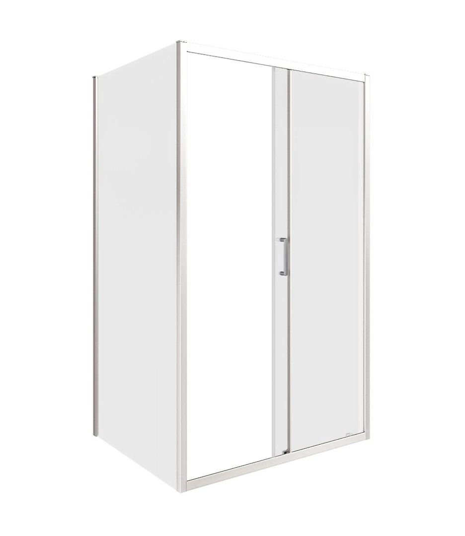 Г-образное душевое ограждение с раздвижными дверками. Покрытие стекла Easy Clean.