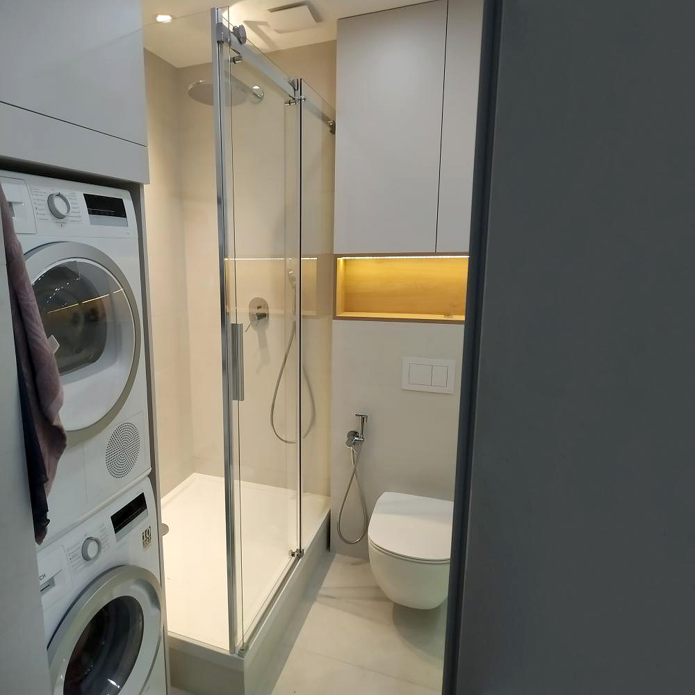 - выполнено из 6-ти миллиметрового закалённого, безопасного стекла с подвижной дверкой на опорных плавных бесшумных подшипниках;