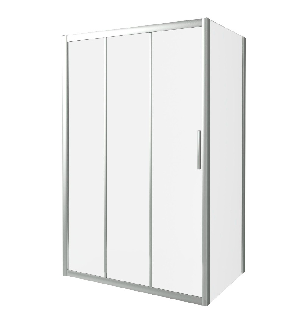 Г-образный душевой уголок с трёхсекционной раздвижной дверью.