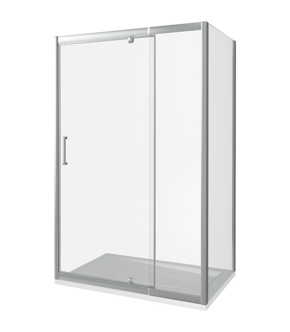 Г-образный душевой уголок с распашной наружу одностворчатой дверью.