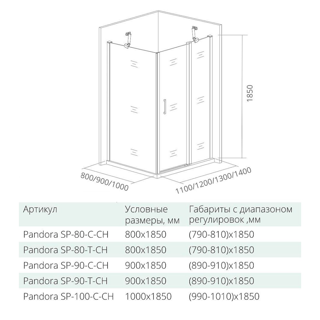 - все душевые ограждения PANDORA оснащены системой «лифтинга» — подъёмом/спуском поворотных дверей в процессе открытия/закрытия дверей;