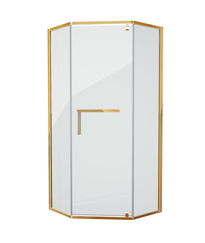 Душевой уголок Grossman PR-90GD золотого цвета из коллекции Pragma. Имеет многогранную форму трапеции.