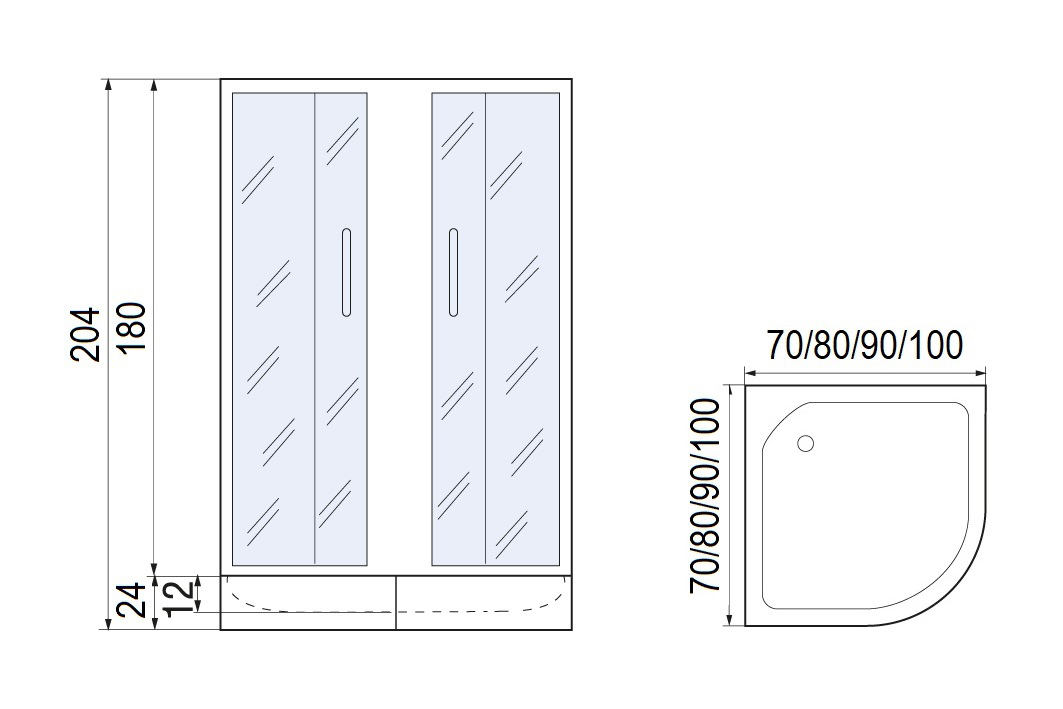 Душевой уголок МОНОМАХ -ДУ 80/180 С МЗ BL, с поддоном