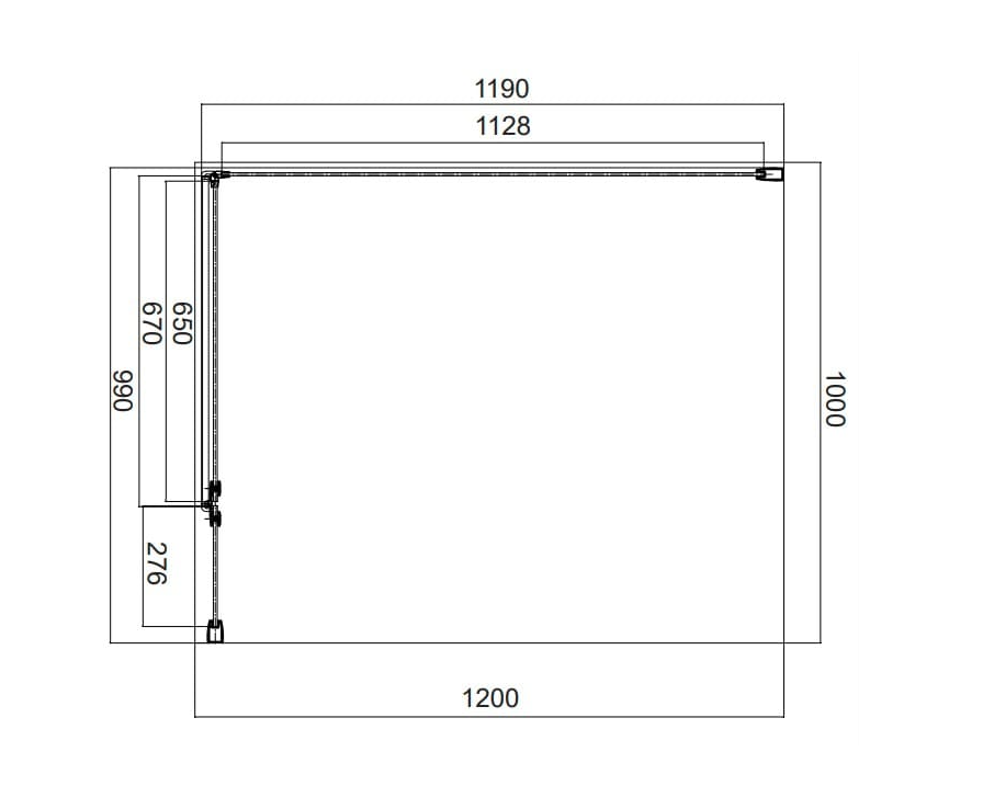 - Размеры: 100 см (дверь) x 120 см (стенка) х 195 см;