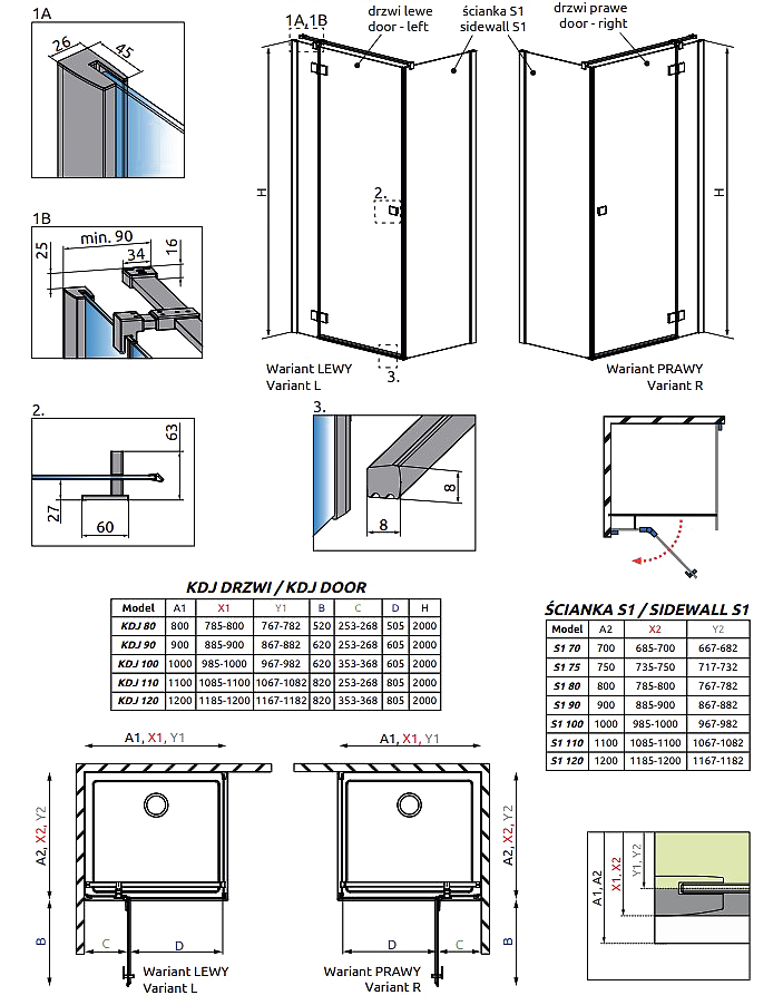 Radaway Essenza Black KDJ – это сборный душевой уголок, который состоит из распашной двери Black KDJ и боковой неподвижной стенки S.