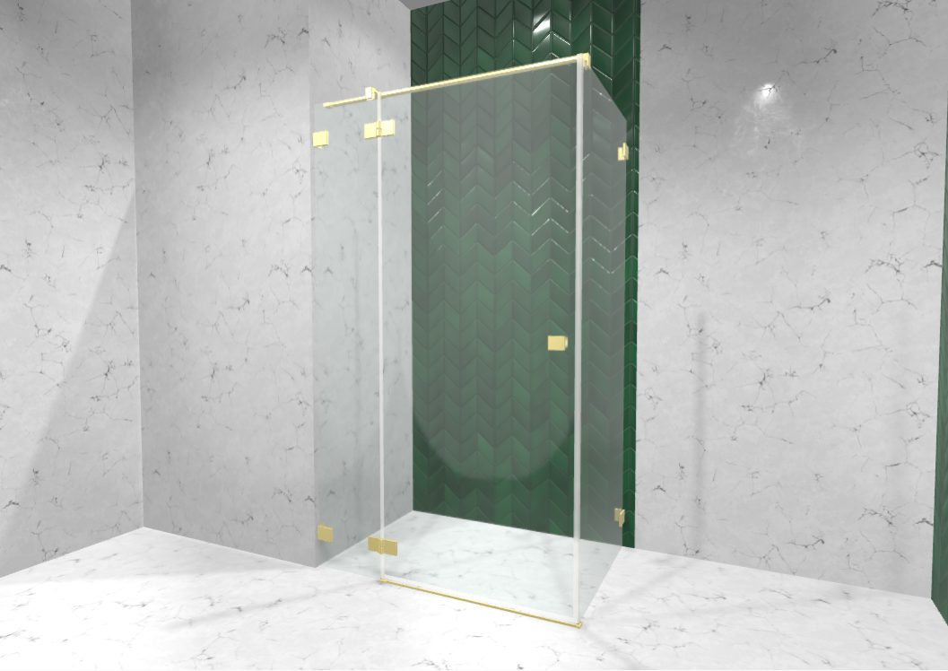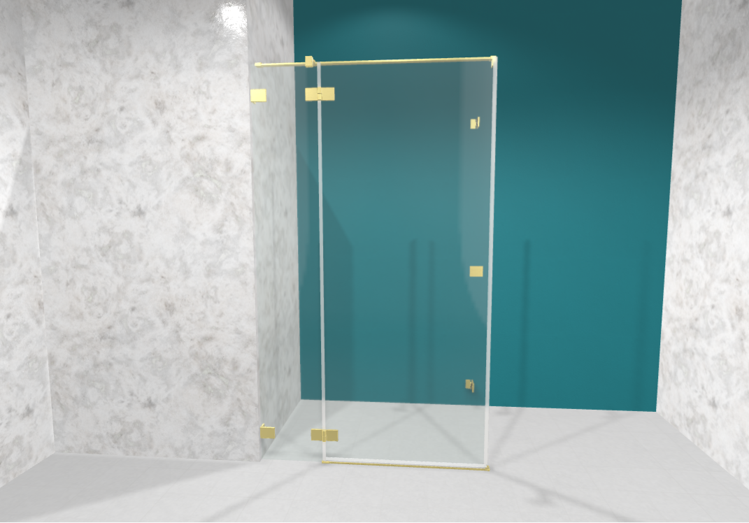 Essenza Pro – коллекция уголков разных форм, дверей и шторок, в которых стационанрое стекло закреплено к стене с помощью кронштейна, а не профиля. Допустимы два варианта монтажа: с уплотнительным профилем или без него. Створка двери подвешена на латунных петлях и открывается только наружу.