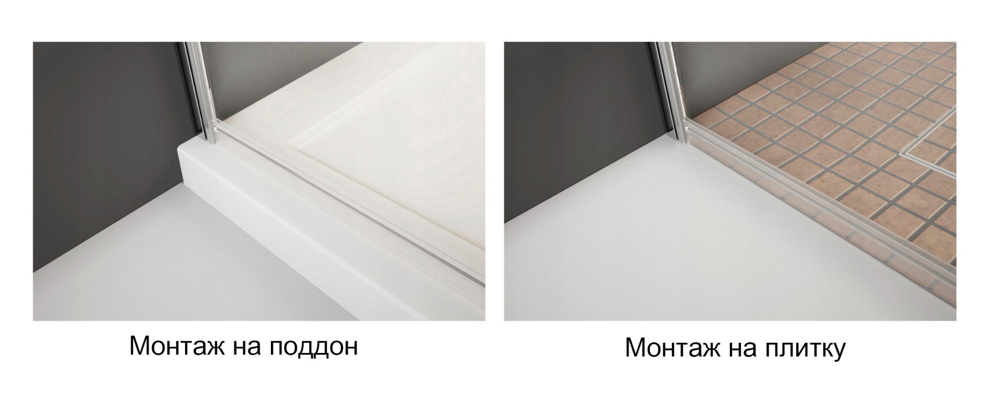 Допускается устанавливать как на поддон, так и непосредственно на пол, с планкой порога или без (в таком случае нижний горизонтальный уплотнитель будет размером выше). Просим при заказе указывать нужный вариант исполнения. Цена кабины без порога и с высоким уплотнителем остаётся без изменений.