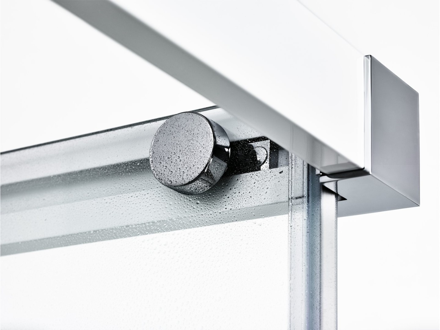 Минимальное количество профилей и отсутствие труднодоступных мест облегчает процесс уборки. Изделие обработано покрытием AntiCalc, которое служит защитой от отложений грязи.