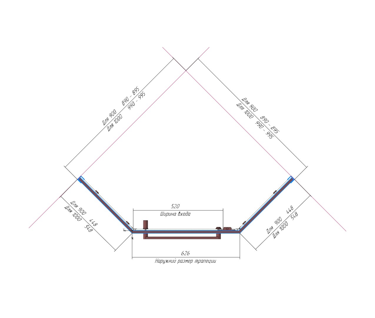 Душевой уголок трапеция с распашной дверью.