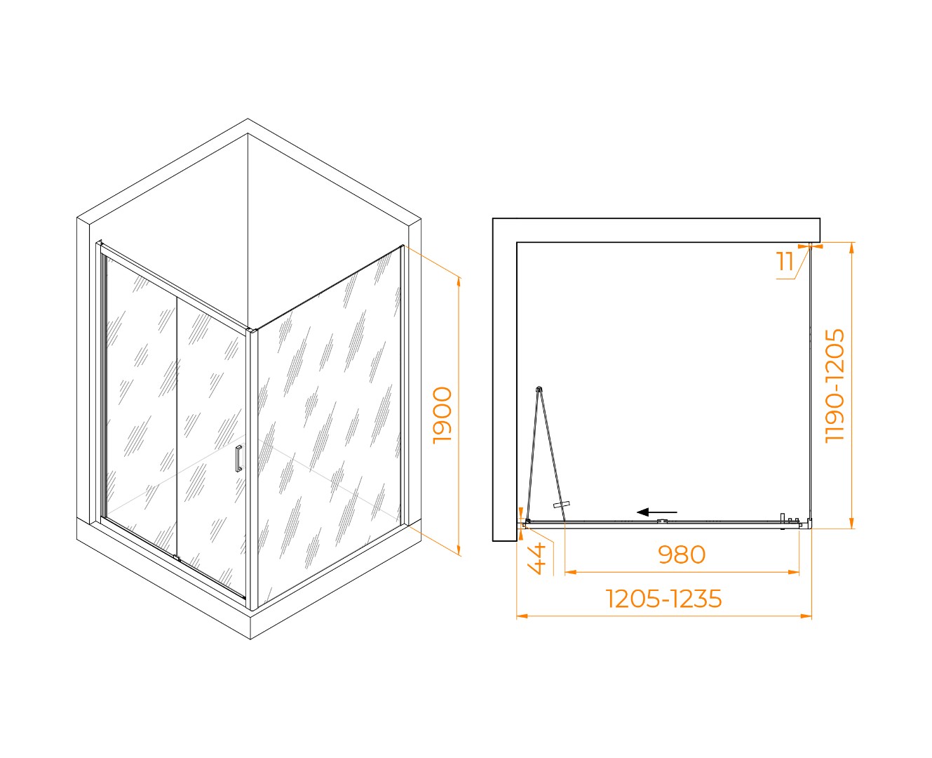 - Адаптивность к неровным стенам. Размеры с диапазоном регулировок: (1205-1235)x(1190-1205).
