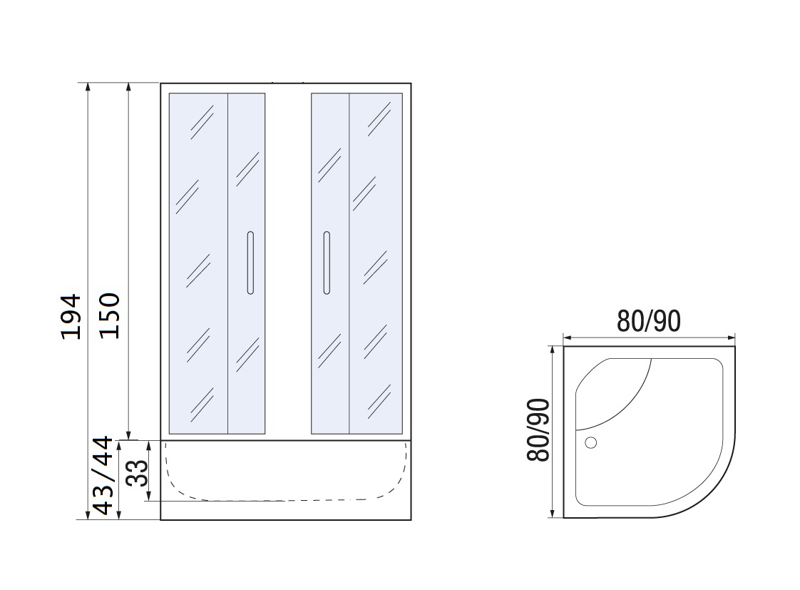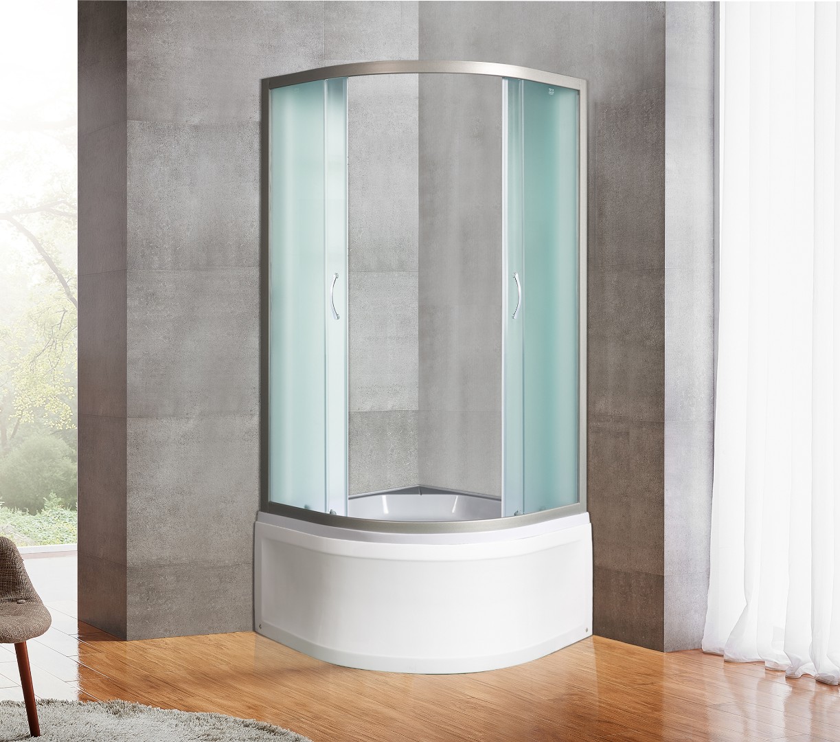Душевой уголок для ванной комнаты полукруглое с боковым регулировочным профилем и саморегулирующимися металлическими, хромированными, двойными роликами.
