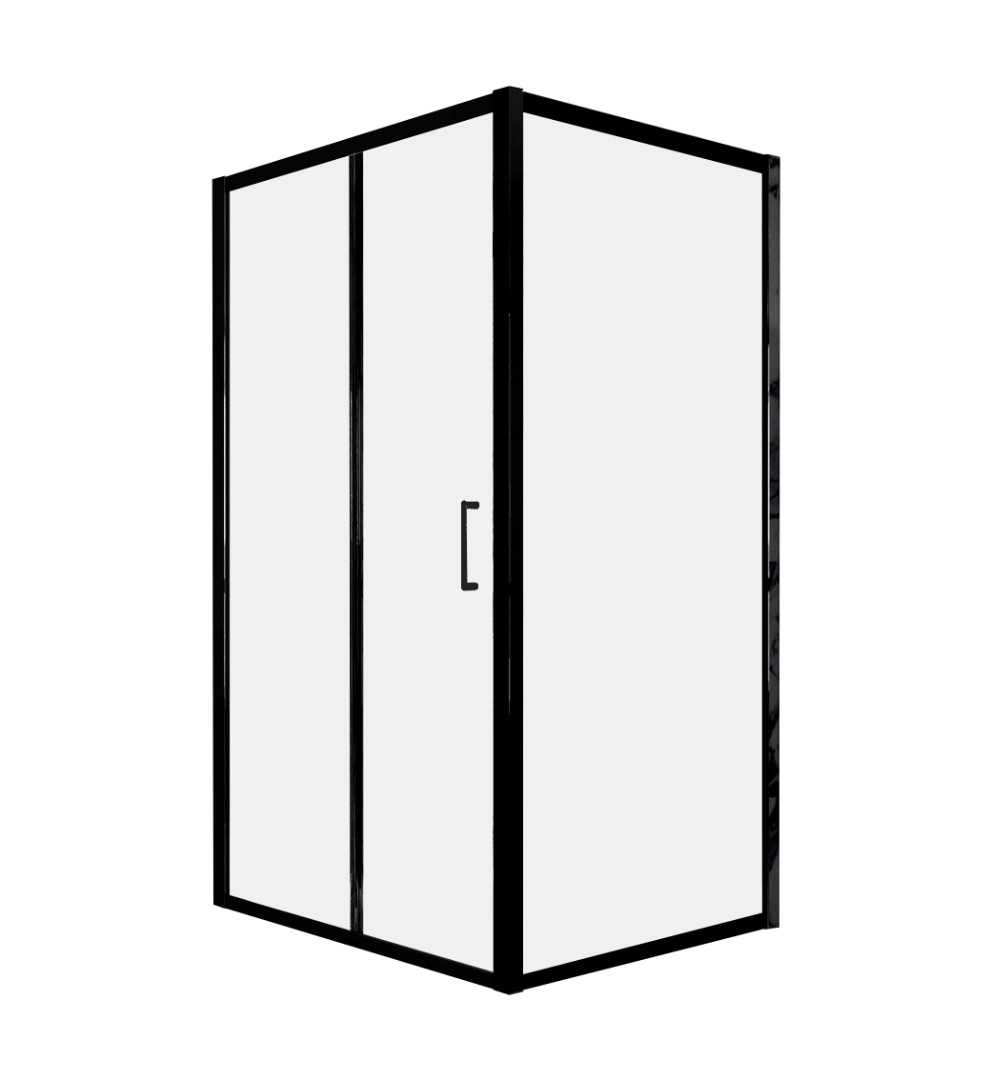 Душевой уголок Roxen Caspia с прозрачным стеклом и чёрным профилем - душевое ограждение прямоугольной формы с раздвижной дверью.
