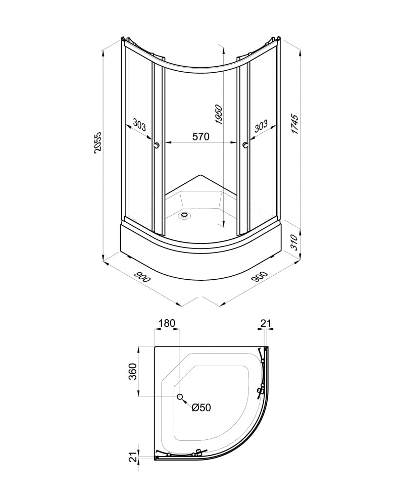 - Поддон душевой со съёмным экраном.