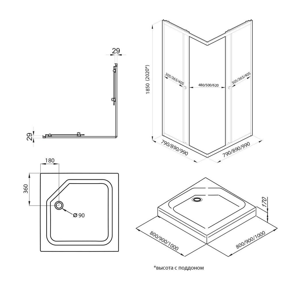 Душевой уголок Triton Вента Хром Вельвет А1 90x90