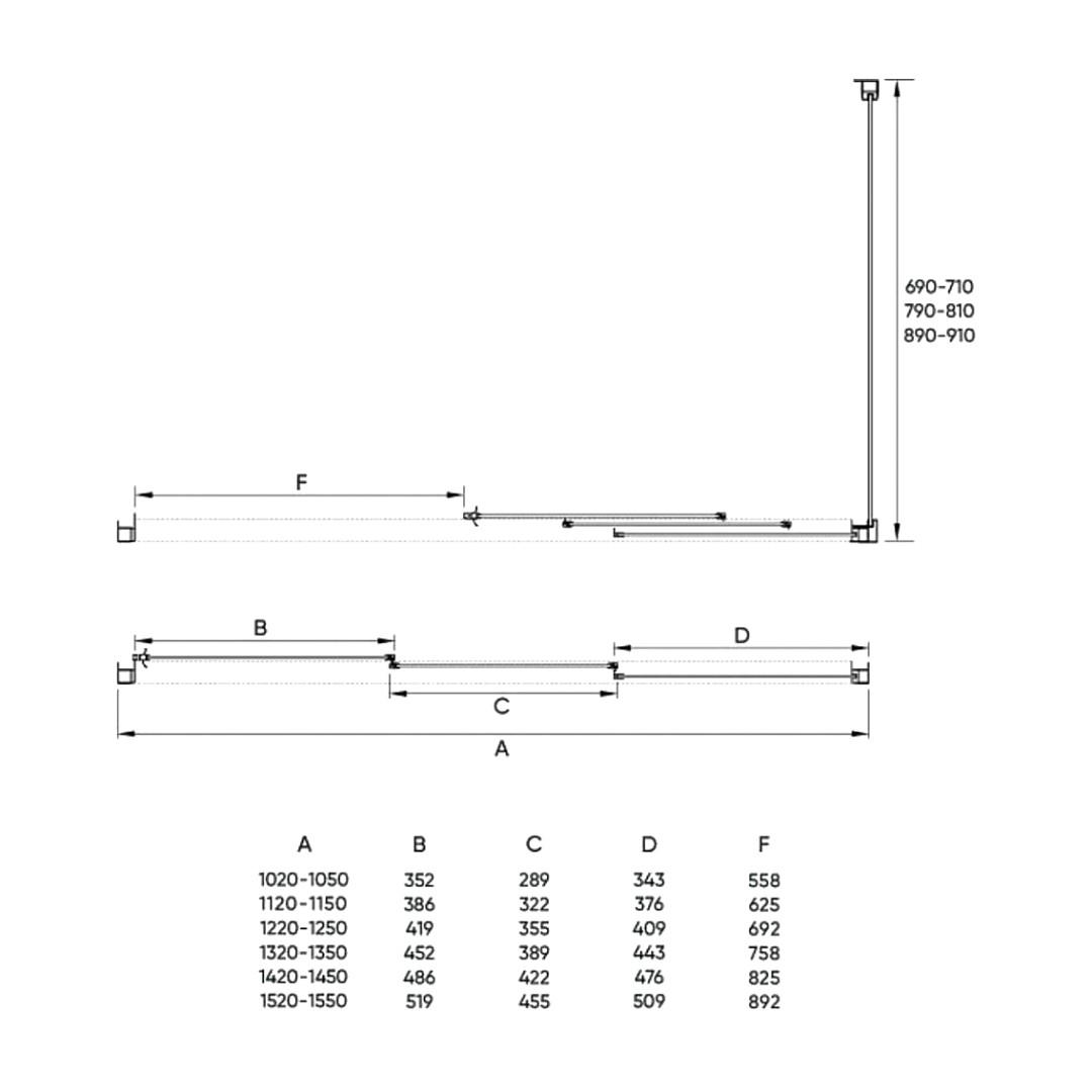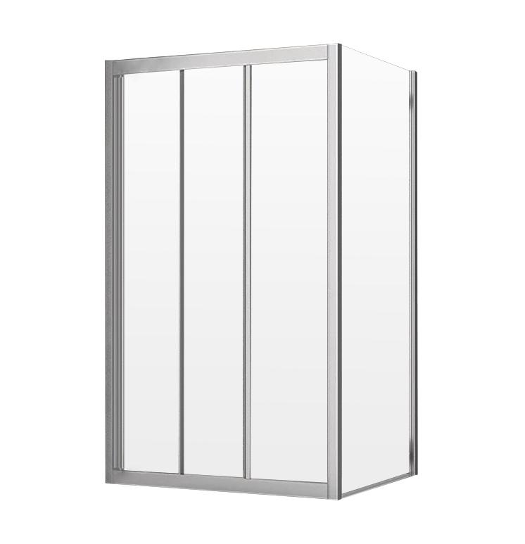 Прямоугольный душевой уголок. Состоит из раздвижной двери VN-31 и боковой панели KP-09. Возможна установка двух боковых панелей для получения уголка П-образной формы.
