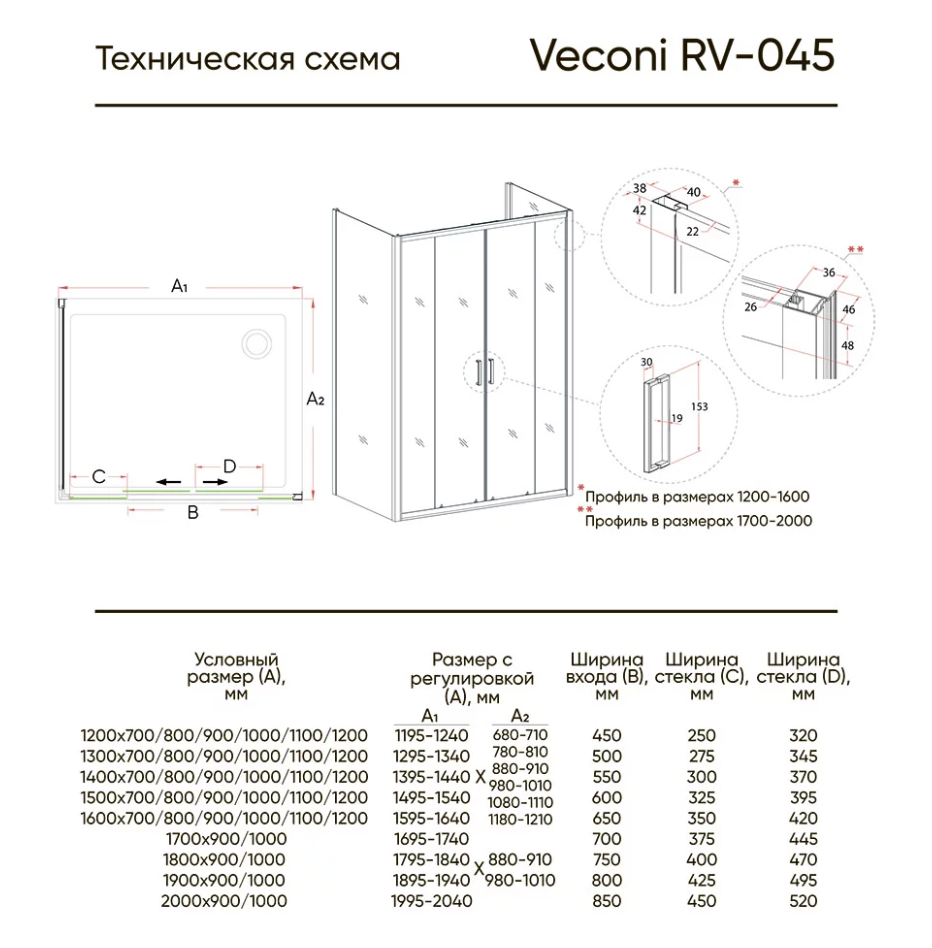 Душевой уголок Veconi Rovigo RV-045 180x90