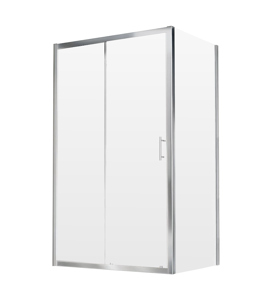 Прямоугольный раздвижной душевой уголок. Состоит из двери VN-72 и боковой панели KP-05. Возможна комплектация двумя боковыми панелями для формирования уголка П-образной формы.
