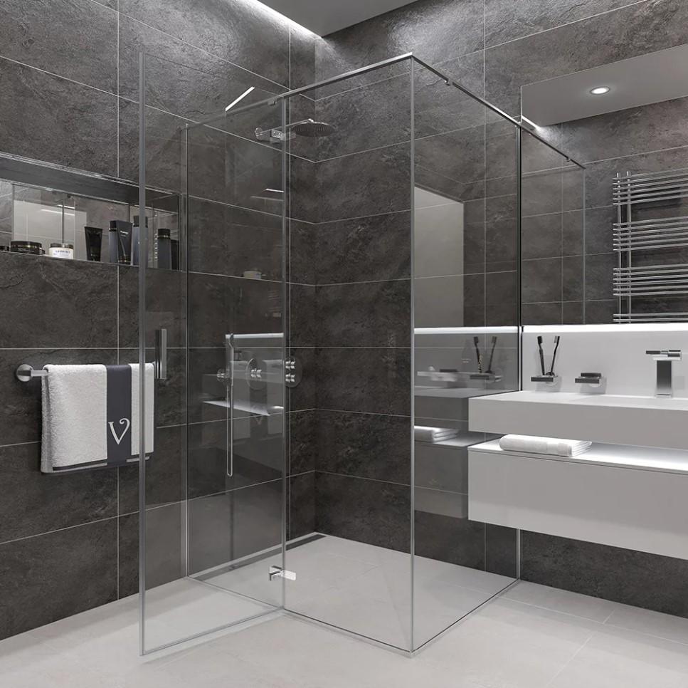 Прямоугольный распашной душевой уголок. Состоит из двери VN-73 и боковой панели KP-07.