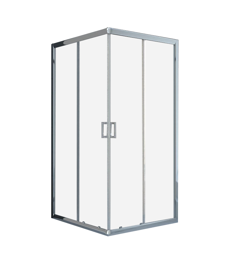 - Квадратный душевой уголок. Две раздвижные двери из центра.